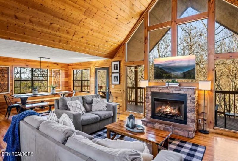 WOW! LOCATION, TURNKEY, AND A COMMUNITY INDOOR/OUTDOOR POOL TO USE YEAR ROUND IN THIS GATED RESORT! 4BR LUXURY CABIN WITH ALL THE BELLS AND WHISTLES! Welcome to this spacious mountain, fully furnished and turn-key, cabin. Ideally located near many of the Smoky Mountains' most popular attractions. The open main living area features cathedral ceilings and large windows that fill the space with natural light. The kitchen includes granite countertops and flows seamlessly into the living room, anchored by a stacked-stone gas fireplace that creates a warm gathering space. The primary bedroom is conveniently located on the main level and includes a jetted tub, offering a private retreat. On the lower level, a generous game room with a pool table and arcade games provides additional living and entertainment space with electric fireplace. Three additional bedrooms are located on the lower level, including a bunk room designed to accommodate guests comfortably. Multiple rear decks provide outdoor living space with seating and a hot tub, perfect for enjoying the mountain setting. Owners and guests also enjoy access to a resort-style heated swimming pool, located within walking distance. Conveniently situated just minutes from Dollywood, Parrot Mountain, Country Splash, shopping, dining, and entertainment, this property is well-suited for a vacation home or STR. Schedule your showing today.