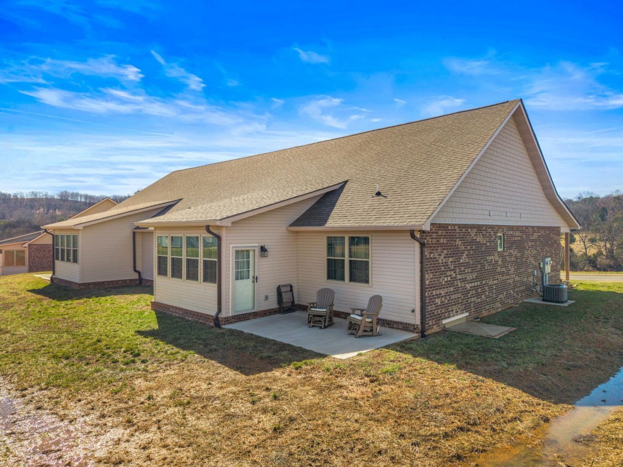 Welcome home to this end unit condo offering 3- bedroom, 2 bath with an open-concept design that seamlessly connects the living room, sunroom, kitchen, and dining area, creating the perfect space for entertaining and everyday living. This spacious kitchen is a dream for any home chef with granite countertops, stainless steel appliances, abundant cabinetry, a lazy Susan and convenient pull-out spice/condiment cabinets for added organization and functionality. Luxury waterproof wood flooring flows through out the home, with farm house molding. While both bathrooms feature granite countertops and quality finishes. The primary bathroom includes a beautiful ceramic tile walk in shower with glass doors, offering a spa like retreat. You'll also appreciate the over sized laundry room with granite countertops providing plenty of space for folding and storage. Enjoy relaxing on the back open patio or the covered front porch to unwind. The exterior features brick and stone construction for a low-maintenance lifestyle, along with a double car garage for convenience and storage. This move-in-ready condo combines comfort, style, and low maintenance living all in one beautiful package. Convenient and desirable location to Knoxville, Morristown, Jefferson City and the Great Smoky Mountain National Park.