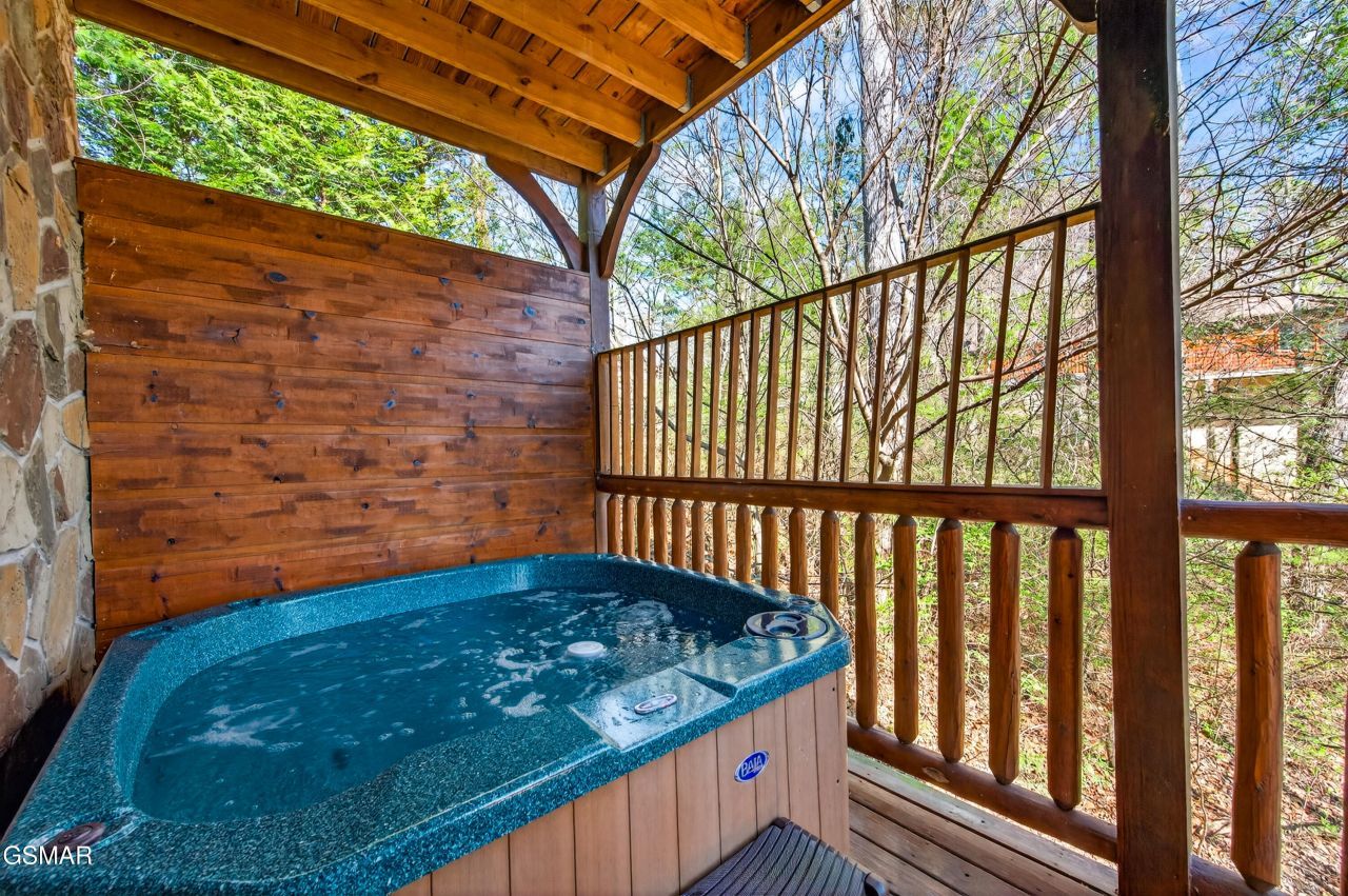 Located in Gatlinburg Falls Resort, this 1,400 sq ft, 1 bed, 2 bath cabin has consistently produced approximately $62K in annual rental revenue over the past 3 years. Positioned just minutes from downtown Gatlinburg, the cabin provides easy access to local attractions and features seasonal mountain views from its location at the end of the street. The well established and popular community also offers access to a seasonal pool.The main level has an open living area with cathedral ceilings and a stone electric fireplace, connecting directly to the kitchen and dining area. The main bedroom includes a king bed and an en-suite bathroom.Downstairs, the lower level maximizes guest capacity with a full-over-full bunk bed, a 2nd bathroom featuring a heart-shaped jetted tub, and game room equipped with a pool table, air hockey, and arcade game. This entertainment space, along with the hot tub on the lower deck, is frequently highlighted by guests as a favorite feature of their stay and a key driver of the cabin's high occupancy.Outdoor spaces include 2 levels of covered decks with seating areas for relaxing in the mountain atmosphere. With its proven rental performance, popular amenities, and functional layout, this cabin offers strong, turnkey income potential in the Smoky Mountains.
